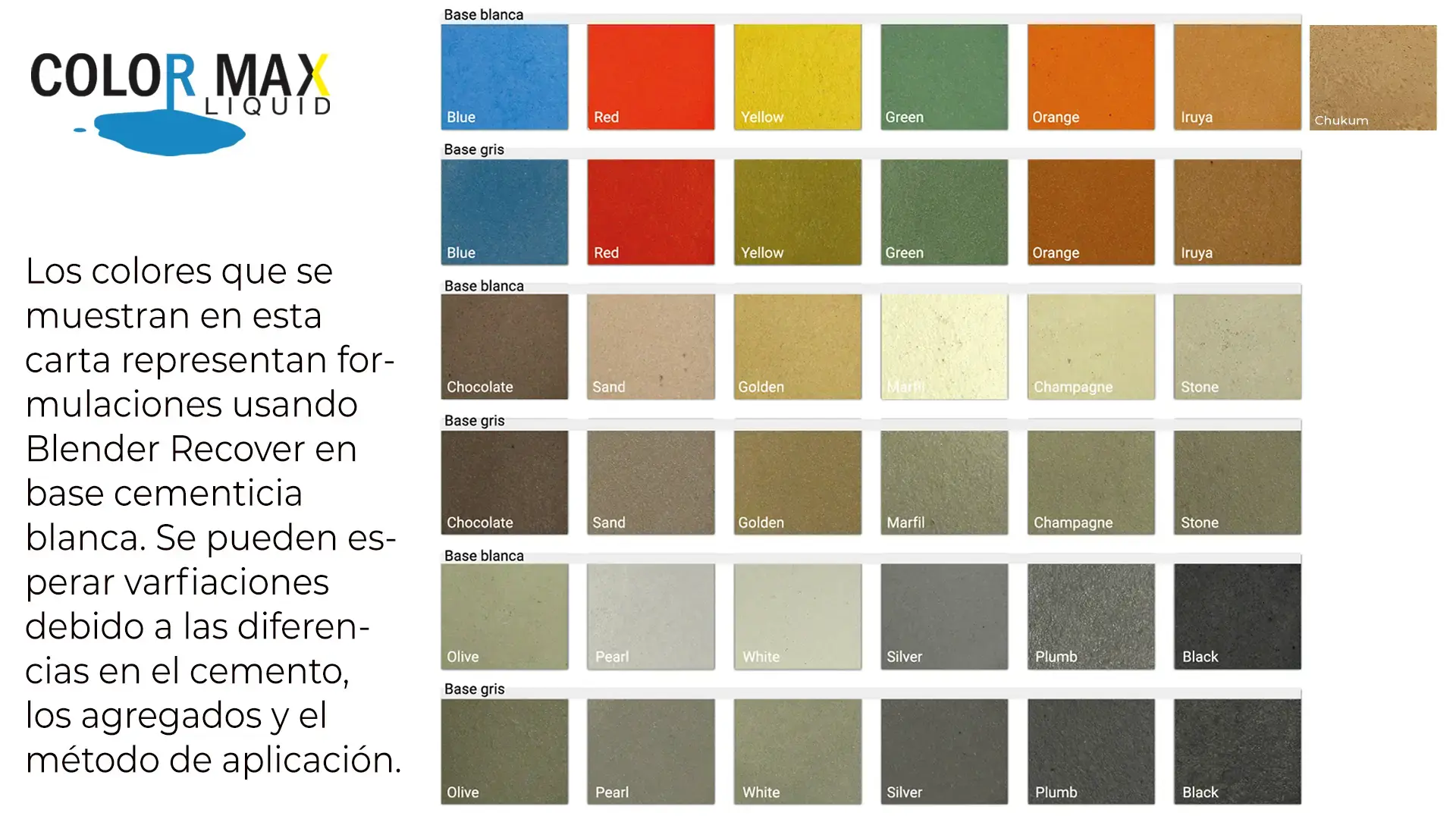 Color Max Liquid® es un colorante líquido de alta calidad, diseñado para dar color a concreto, morteros y otros recubrimientos.